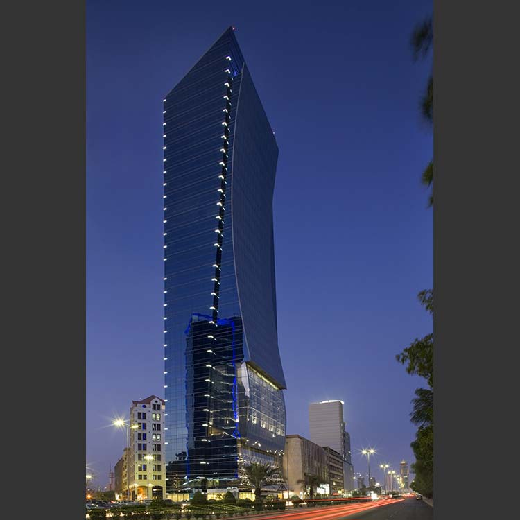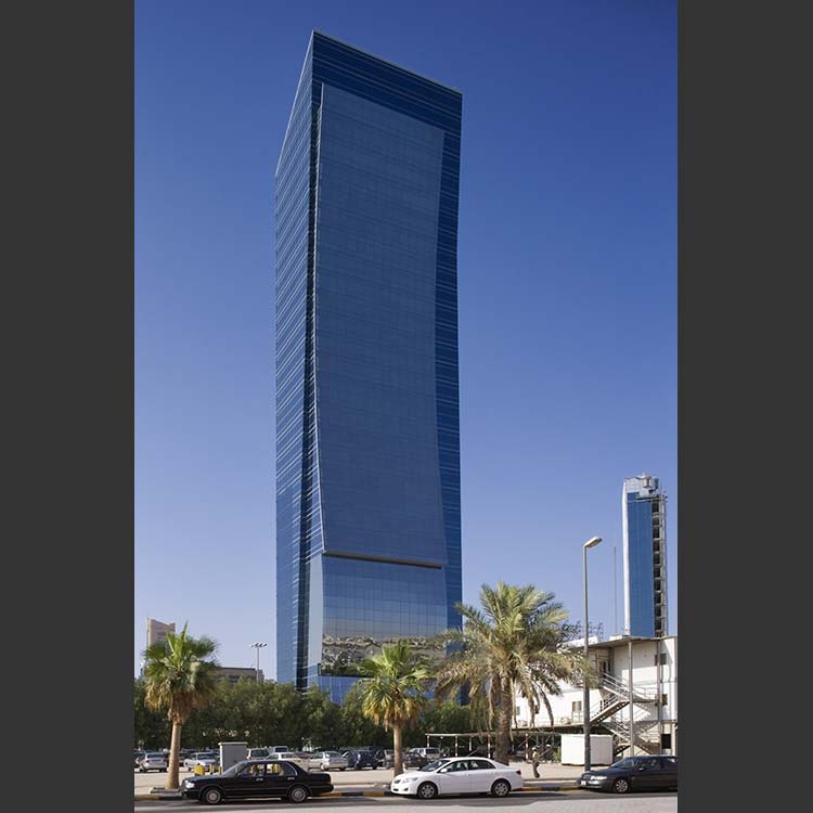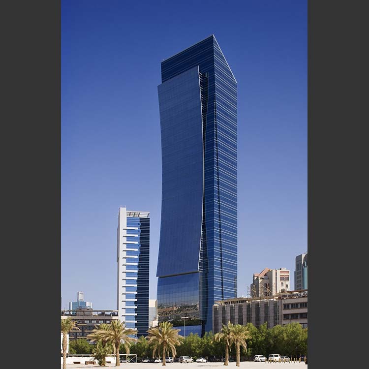 A unique addition to Kuwait’s skyline, this exclusive office tower is located on a prominent downtown site on Al Sour Street. The massing of the tower is expressed as a series of floating, curved glass forms suspended over an emerging glass core.