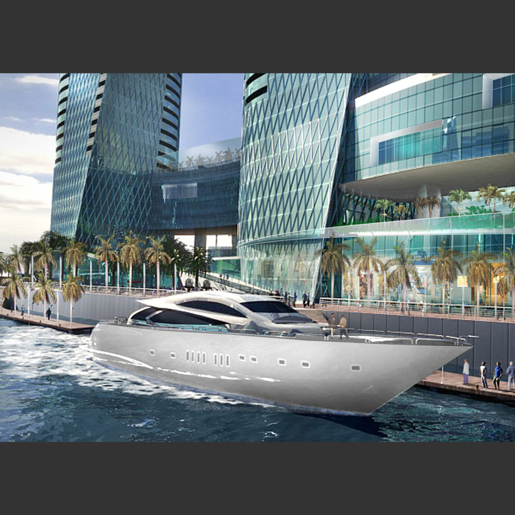 A Terraced Podium, Elevated Villas and three Twisting Towers, are the primary elements of this development. These components interact to create an exclusive residential development featuring landscaped terraces, parks, and water features that cascade towards the ocean.